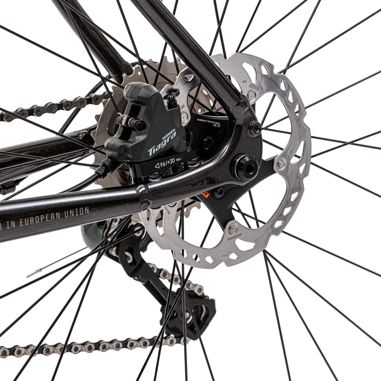 • Велосипед оснащен дисковыми гидравлическими тормозами Shimano Tiagra BR-4770, которые обеспечивают мощное и надежное торможение в любых погодных условиях